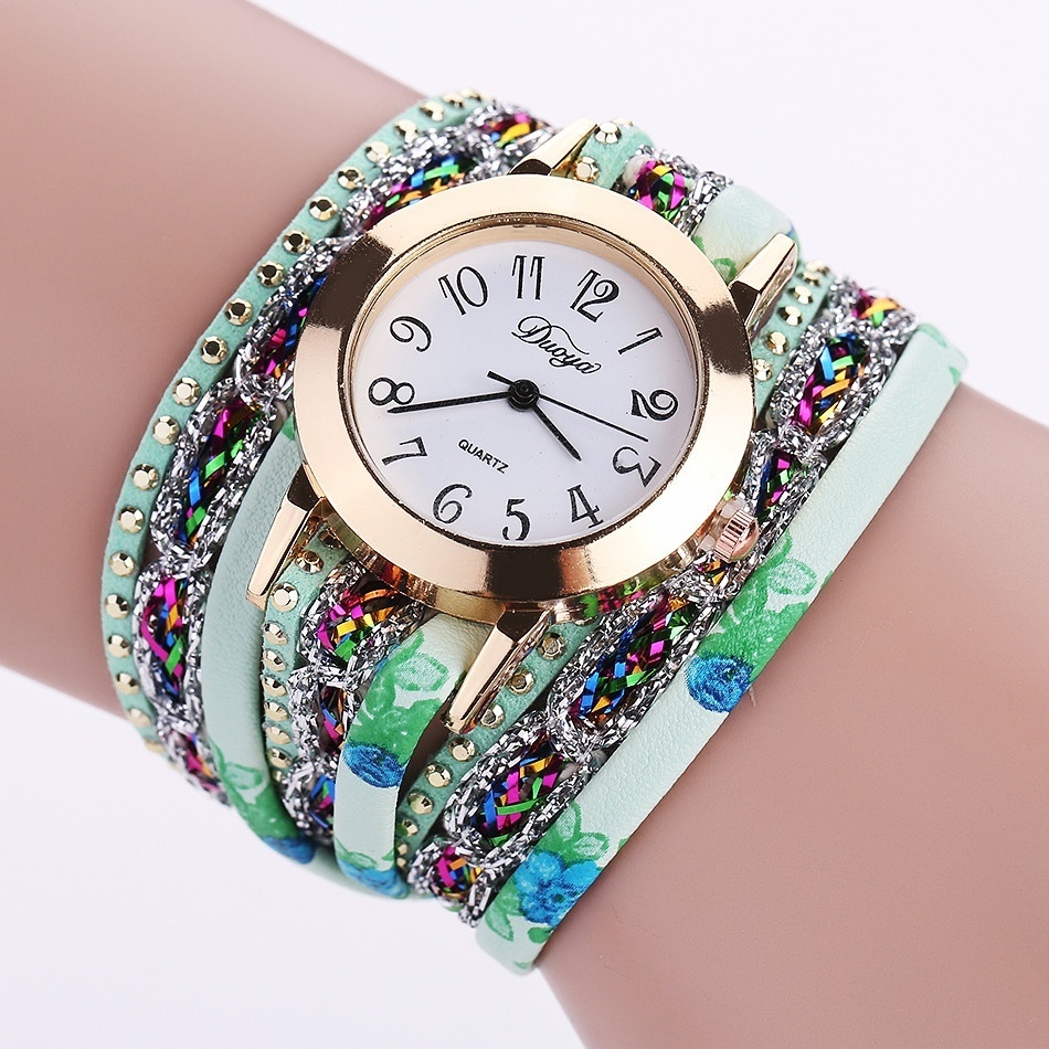 Harga Duoya Merek Baru Jam Tangan Wanita Bunga Populer QUARTZ Jam Tangan Mewah Gelang Wanita Pakaian Wanita Hadiah Batu Permata Bunga-Hijau -Intl