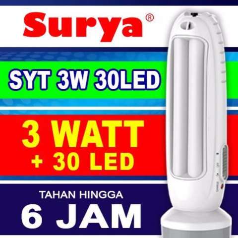 Surya Lampu Emergency SYT 3W+30 SMD LED produk lampu emergency berkualitas dengan teknologi LED (Light Emitting Diode) yang mampu menghasilkan cahaya yang lebih terang dan cerah , serta daya tahan yang 10x lipat lebih lama dibanding teknologi lampu konvensional.