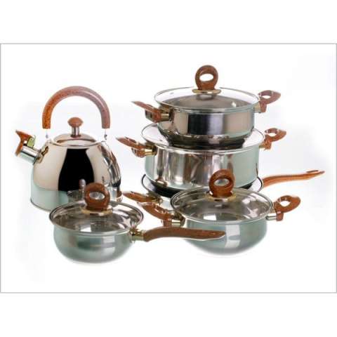 Satu set alat memasak yang terbuat dari stainless steel yang dilengkapi dengan gagang anti panas yang terbuat dari PVC. Satu set alat masak ini akan sangat membantu anda dalam mengolah bahan makanan untuk disajikan bagi keluarga. Sangat cocok digunakan untuk di rumah ataupun di restoran.